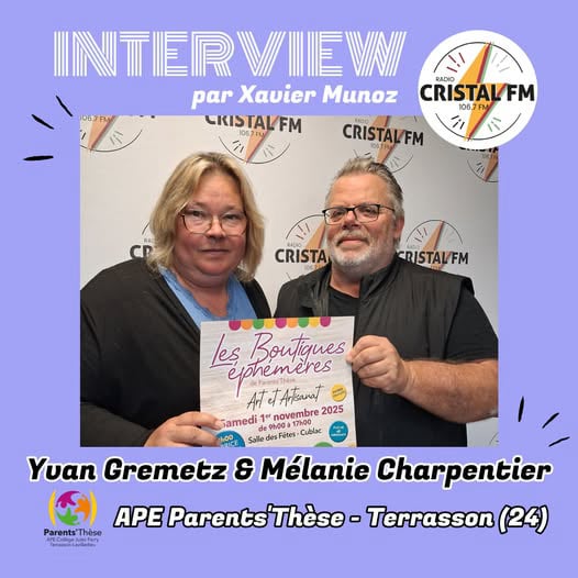 COULEURS PERIGORDS - Aujourd’hui, cap sur Cublac (19), où la salle des fêtes accueillera la 1ère édition des "Boutiques Éphémères" le samedi 1er novembre. Un rendez-vous à la fois créatif, convivial et solidaire, organisé par l’association APE Parents' Thèse, au profit du collège Jules Ferry de Terrasson-Lavilledieu. Pour dresser le bilan des actions menées par l’association et nous en dire plus sur cet évènement, Xavier Munoz dans cette nouvelle édition, s’est entretenu avec Mélanie Charpentier et Yvan Gremetz, respectivement présidente et chargé de communication de l’APE.