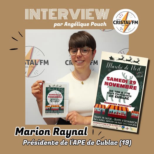 COULEURS PERIGORDS - Direction la Corrèze, à Cublac (19), où l'Association des Parents d’Élèves prépare un rendez-vous qui a désormais son importance sur le secteur : le Marché de Noël ! Celui-ci se tiendra ce samedi 29 novembre à la salle polyvalente. Pour nous en dire plus sur cet évènement, dans cette nouvelle édition, Angélique Pouch s'est entretenue avec Marion Raynal, présidente de l’APE Cublac.