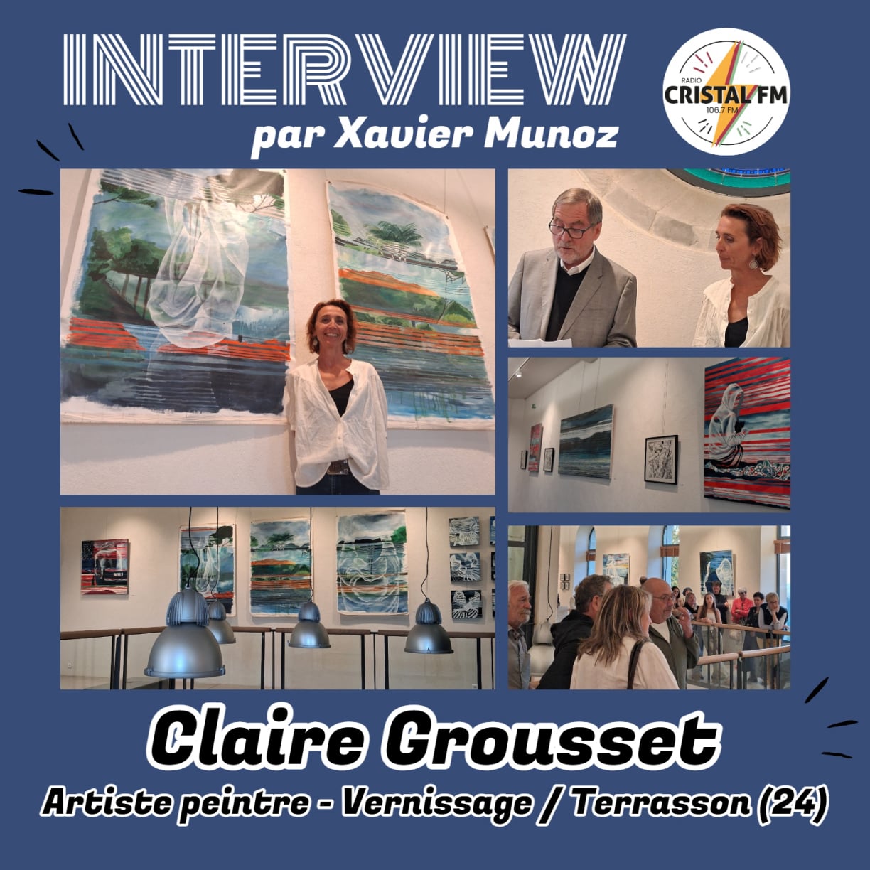CULTURA POP – Direction la Maison du Patrimoine de Terrasson-Lavilledieu où se tient jusqu’à la fin de l’année, l’exposition de Claire Grousset, artiste peintre périgourdine. À travers ses toiles, entre abstrait et paysages intérieurs, Claire nous invite à un voyage sensible fait de lumière, de matières et d’émotions. Rencontrée lors de la soirée de vernissage, elle nous en dit plus au micro de Xavier Munoz.