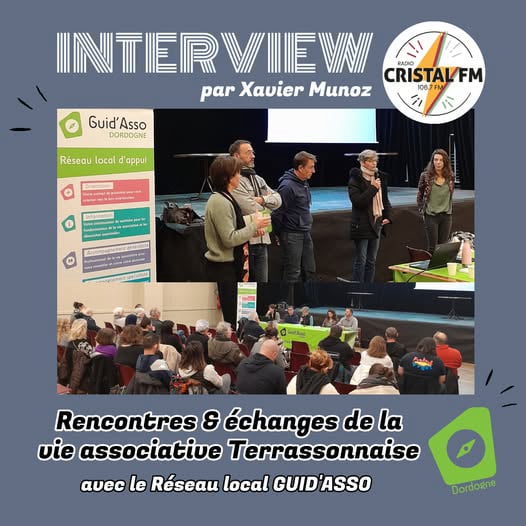 TERRAZOOM - Guid'Asso Dordogne est un réseau d’accompagnement pour les associations. Il propose de l’information, de l’orientation, ou encore de l’aide pratique. Une rencontre a été organisée le 22 novembre dernier à Terrasson-Lavilledieu (24). A cette occasion une vingtaine d’associations terrassonnaises étaient présentes pour découvrir cette structure et participer aux ateliers proposés. Dans cette nouvelle édition, nous retrouverons Isabelle Dupuy, maire adjointe, Christelle Michaud, Marc Seguin, et Lionel Dumain du réseau Guide’Asso, mais également Jean Bousquet, maire de la commune au micro de Xavier Munoz.