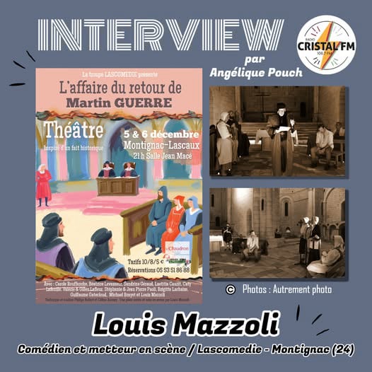 CULTURA POP - Direction Montignac-Lascaux (24) où la troupe Lascomedie remonte sur scène avec une toute nouvelle création : “L’affaire du retour de Martin Guerre”. Un fait divers du XVIe siècle rendu célèbre dans les années 80 par l'adaptation cinématographique avec Gérard Depardieu et Nathalie Baye, cette œuvre n’avait encore jamais été adaptée au théâtre. Deux représentations sont prévues à la salle Jean Macé, les vendredi 5 et samedi 6 décembre, à 21h. Pour nous en dire plus dans cette nouvelle édition, Angélique Pouch s'est entretenue avec Louis Mazzoli, comédien et metteur en scène.