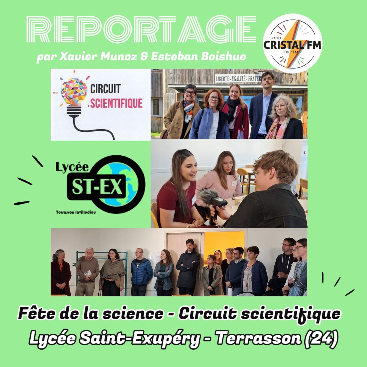 TERRAZOOM - Mardi 7 octobre, le Lycée Antoine de Saint-Exupéry de Terrasson accueillait la deuxième escale du Circuit scientifique. Créé il y a plus de vingt ans, ce dispositif a pour vocation de faire découvrir le monde de la recherche et de susciter l’intérêt pour les sciences. À cette occasion, dans cette nouvelle édition, Xavier Munoz s’est entretenu avec Nathalie Malabre, directrice académique des services de l'Éducation nationale de la Dordogne, Sophie Matusinski, conseillère académique pour la culture scientifique, et Sadia Detrez, proviseure du lycée. De son côté, Esteban Boishue a recueilli les impressions de Melek, Ambre et Méloée, élèves de Terminale pro Accueil, ayant participé à l’organisation de la journée, ainsi que le ressenti de plusieurs lycéens en fin de parcours.