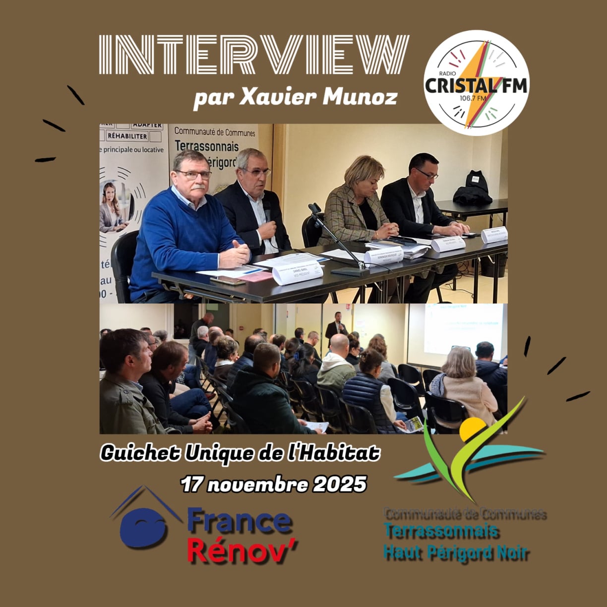 VŒUX COM COM 2025 - Toute les équipes de la Communauté de Communes Terrassonnais Haut Périgord Noir étaient rassemblées pour une présentation des vœux, le jeudi 23 janvier en la salle des fêtes de Terrasson-Lavilledieu (24). Dans le cadre de cette émission spéciale sur Cristal FM, Xavier Munoz, à l'issue du discours, s’est entretenu avec Dominique Bousquet, Président de la CCTHPN.