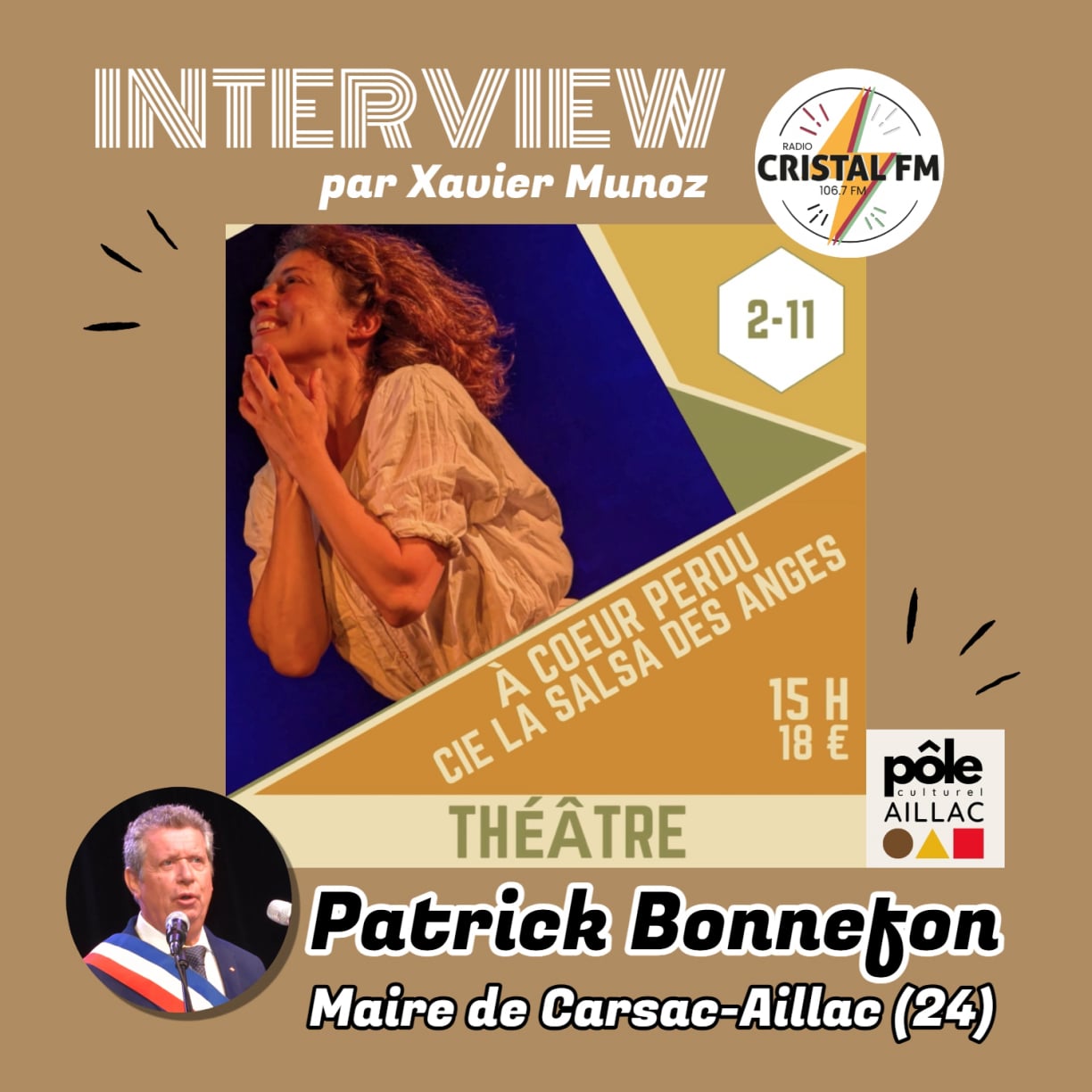 CULTURA POP - Aujourd’hui, direction Carsac-Aillac (24), où la salle du Séchoir du Pôle culturel d’Aillac) accueillera une pièce de théâtre émouvante intitulée « À cœur perdu », le dimanche 2 novembre à 17h. Une œuvre inspirée d’une histoire vraie, celle de l’auteure Emmanuelle De Boysson qui sera présente pour rencontrer le public et dédicacer son roman. Cette représentation est proposée en partenariat avec le club de randonnée " Salignac Cœur en chemin ". Pour nous en dire plus dans cette nouvelle édition, Xavier Munoz s’est entretenu avec Patrick Bonnefon, maire de la Commune de Carsac-Aillac.