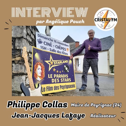 COULEURS PERIGORDS - Dimanche 16 novembre à 15h, à la salle des fêtes, la commune de Peyrignac (24) organise la projection du film « Starland » réalisé par Jean-Jacques Lafaye, avec la participation des habitants. Une après-midi « ciné-crêpes », placée sous le signe de l’humour et du “fait maison”. Pour nous parler de ce film pas comme les autres et de cet évènement 100% local, Angélique Pouch s'est entretenue avec le réalisateur Jean-Jacques Lafaye, ainsi qu'avec le maire de la commune, Philippe Collas.